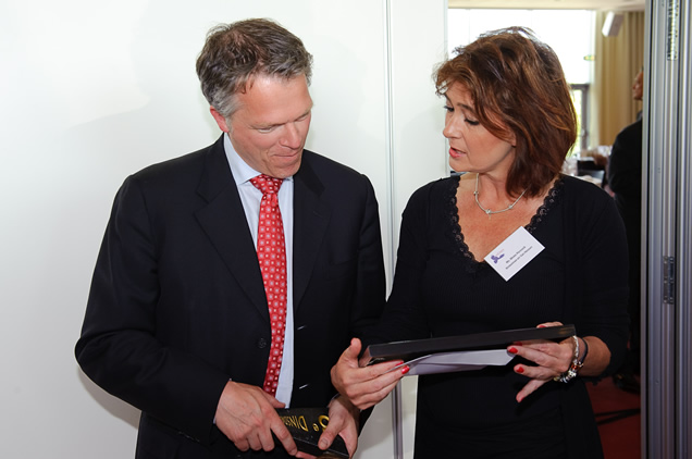 Mieke Pennock met toenmalig minister van financiën Wouter Bos.